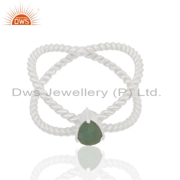 Natural Emerald Gemstone 925 Silver Cross Design Ring Manufacturer