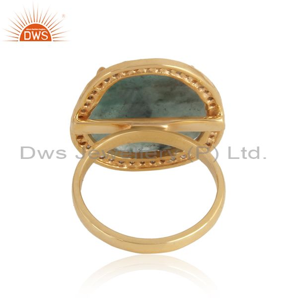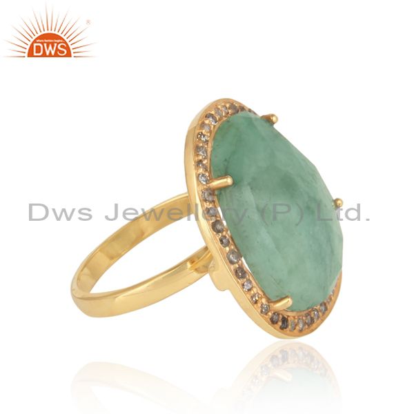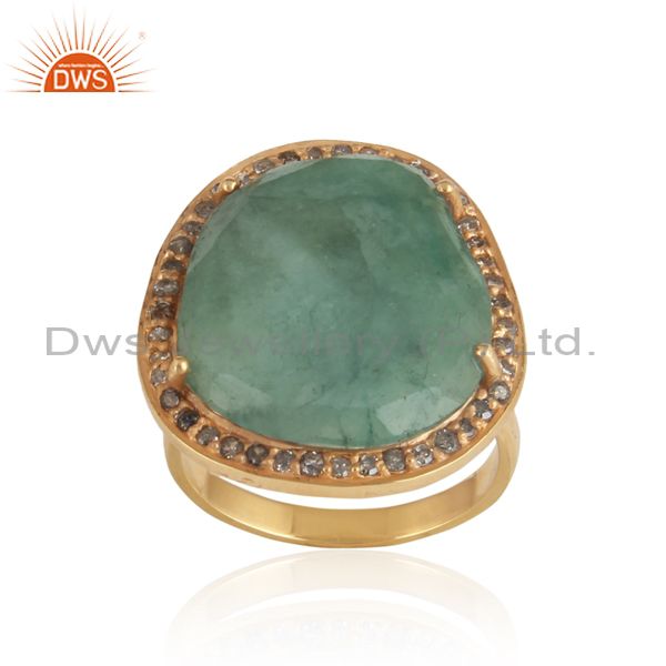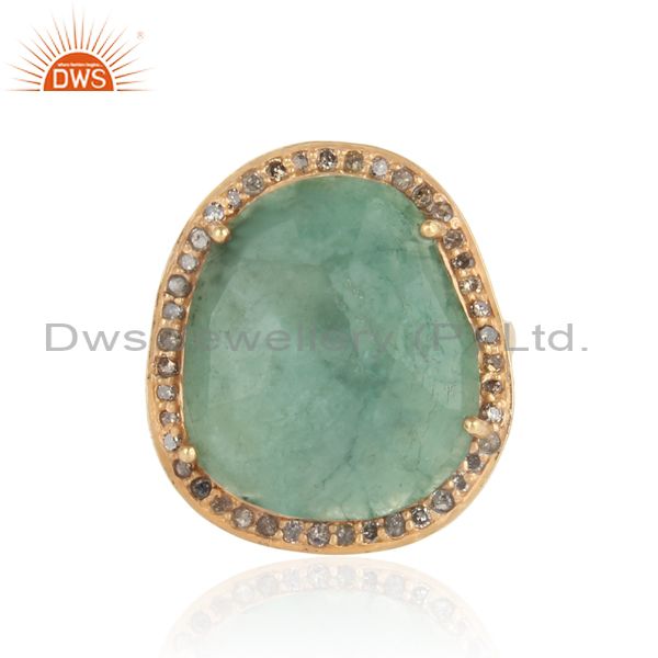 Natural Emerald Gemstone And Pave Diamond Silver Statement Ring Wholesale