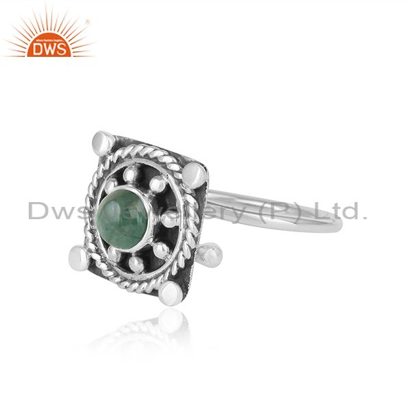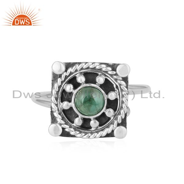 Natural Emerald Gemstone Antique 925 Silver Oxidized Ring Jewelry