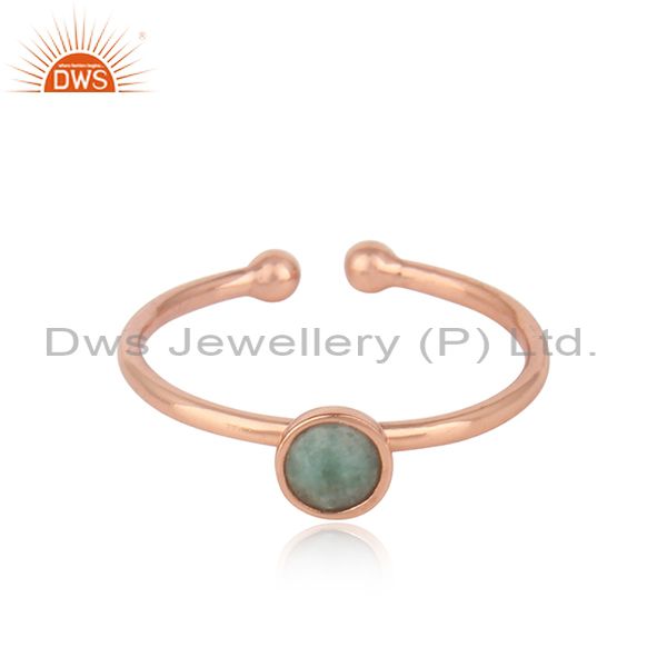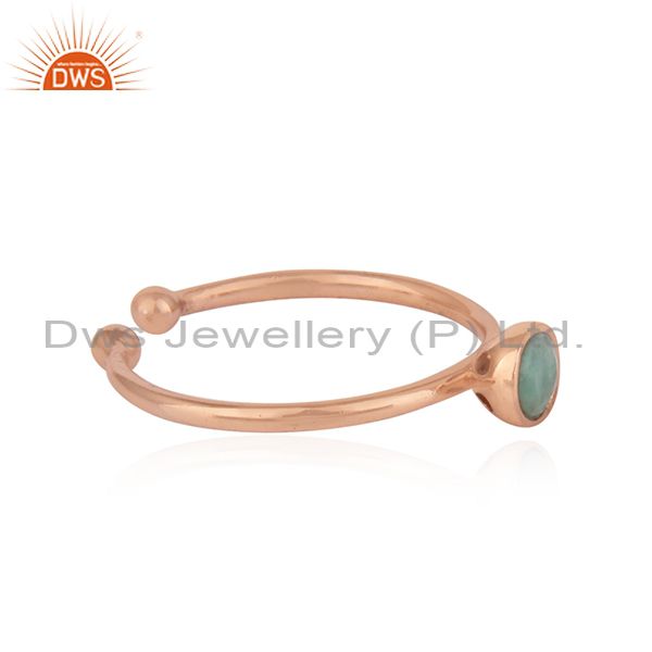 Natural Emerald Gemstone Rose Gold Plated Designer Silver Ring Jewelry