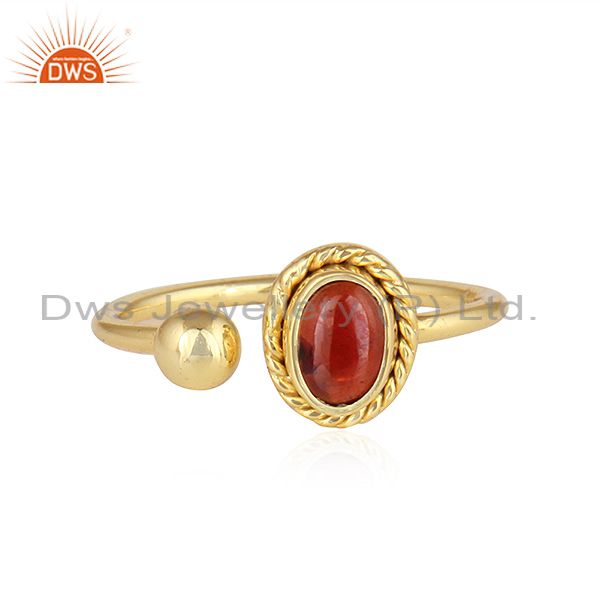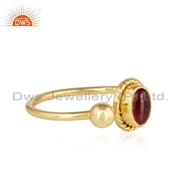 Natural Garnet 18K Yellow Gold Plated Designer Silver Ring Jewelry