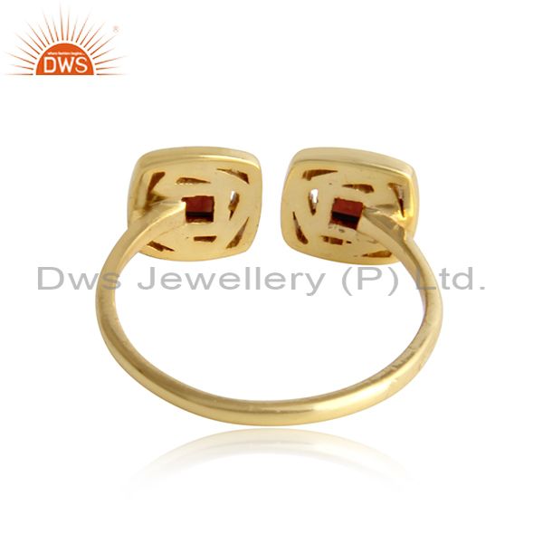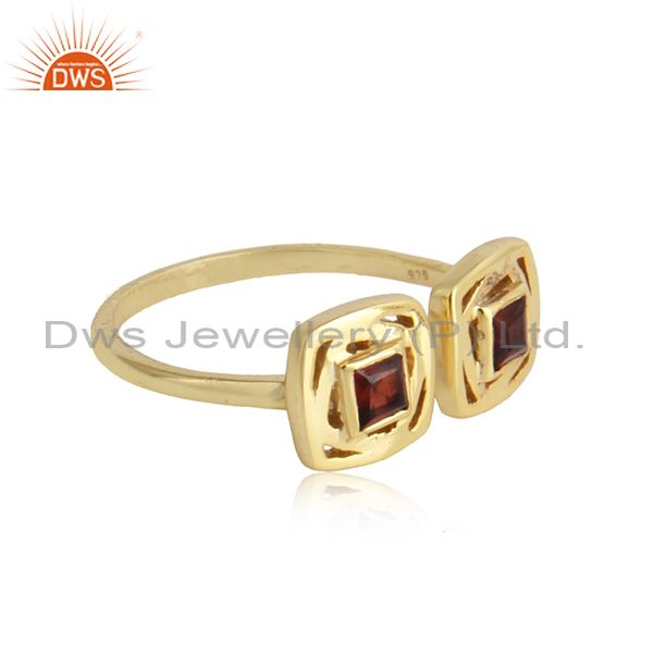 Natural Garnet Gemstone Girls Designer Gold Plated Silver Rings