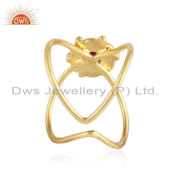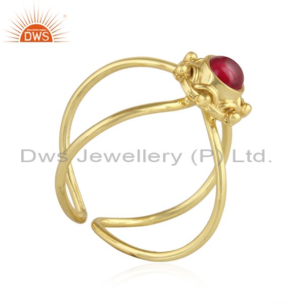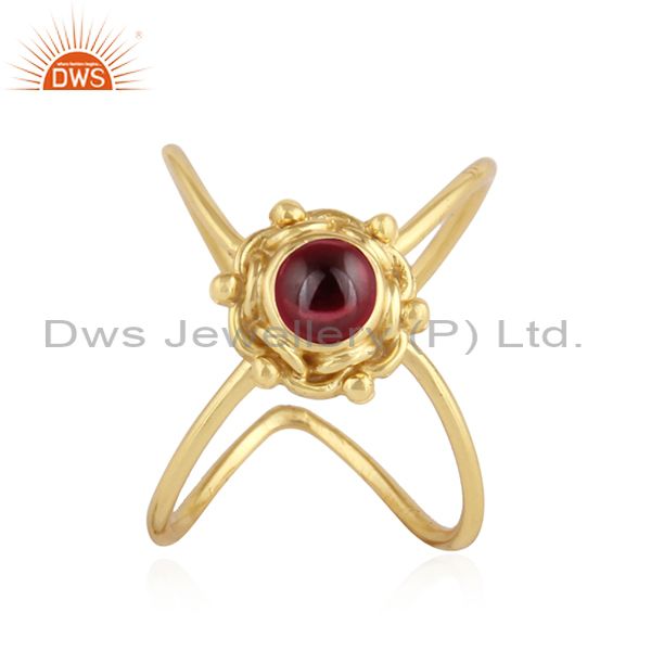 Natural Garnet Gemstone Handmade Design Gold Plated Silver Rings