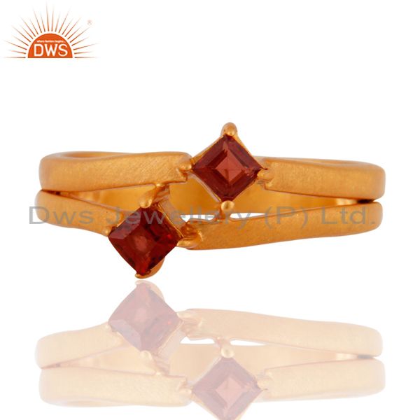 Natural Garnet Gemstone Ring In 18 Karat Gold On 925 Sterling Silver Jewelry