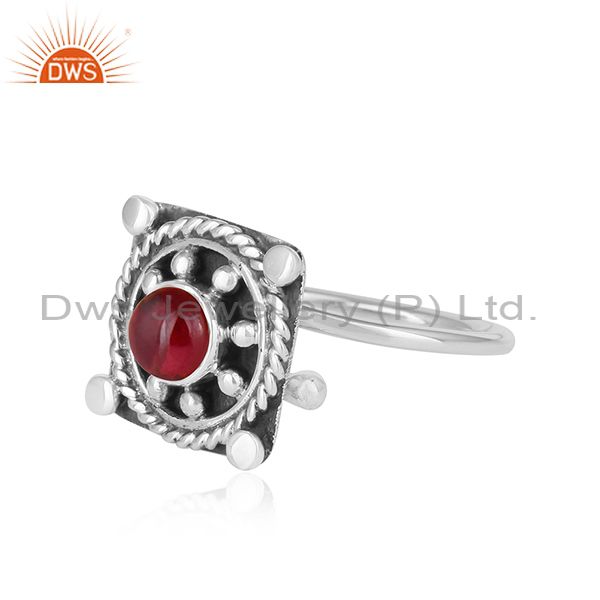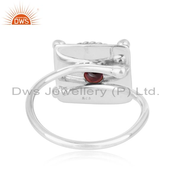 Natural Garnet Vintage Design Sterling Silver Oxidized Ring For Womens