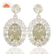 Natural Green Amethyst Sterling Silver Gemstone Halo Ring With White Topaz