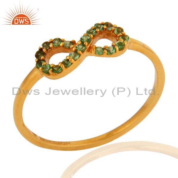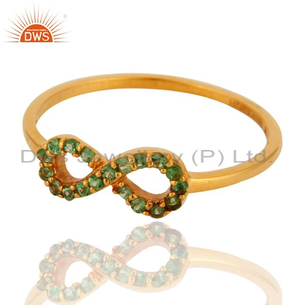Natural Green Garnet Tsavorite Gemstone 9K Solid Gold Infinity Wedding Ring