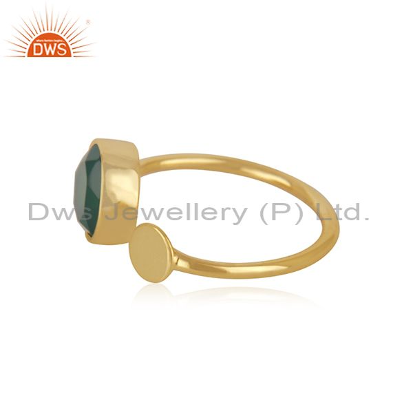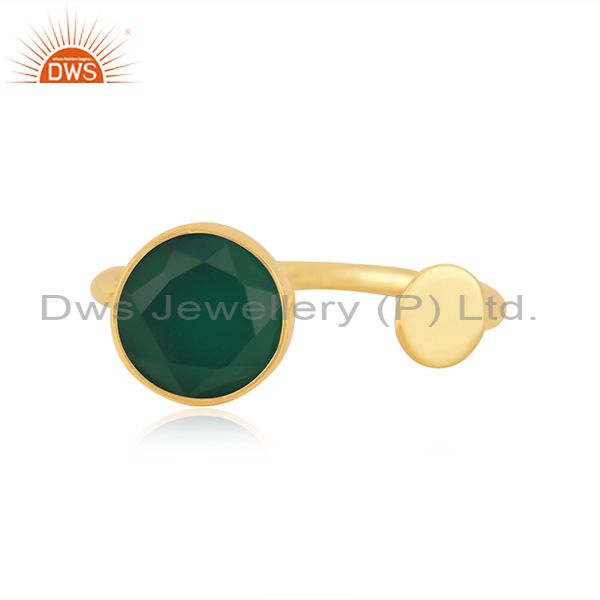 Natural Green Onyx Gemstone Gold Plated 925 Silver Ring Supplier From Jaipur