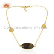 Natural Labradorite Gemstone Gold Plated 925 Sterling Silver Ring