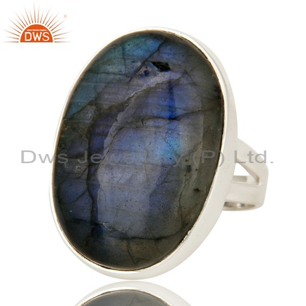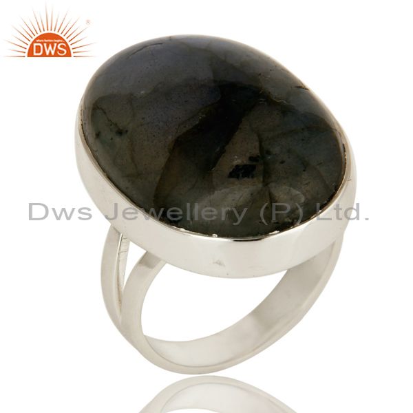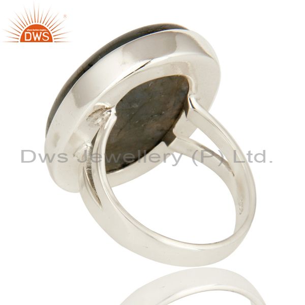 Natural Labradorite Gemstone Sterling Silver Bezel Set Statement Ring