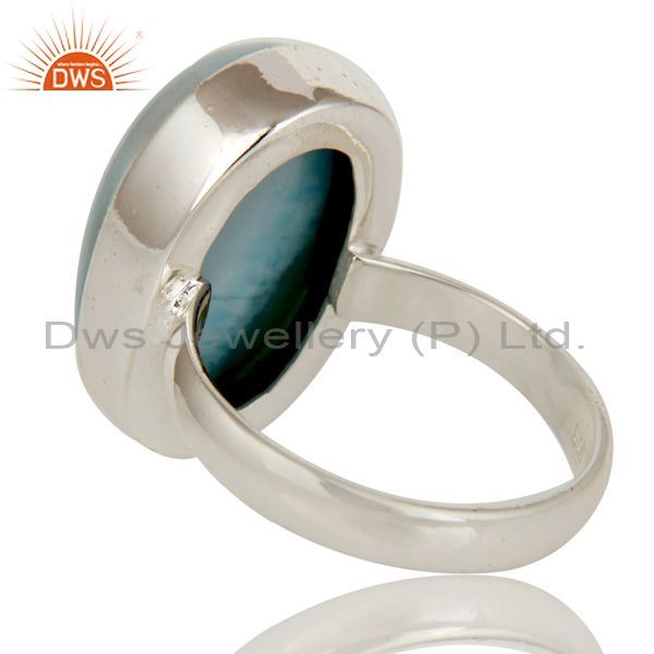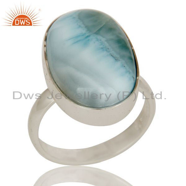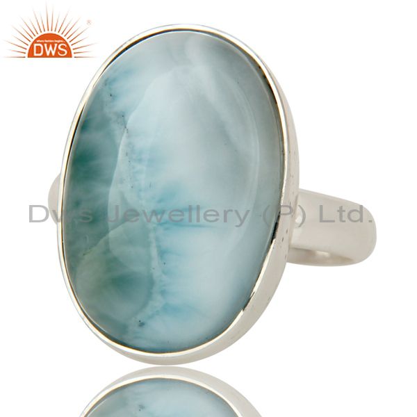 Natural Larimar and Solid Sterling Silver Bezel Set Ring