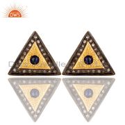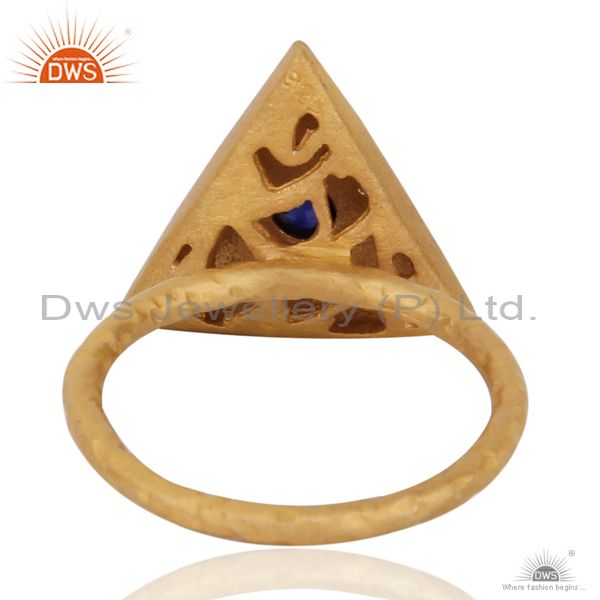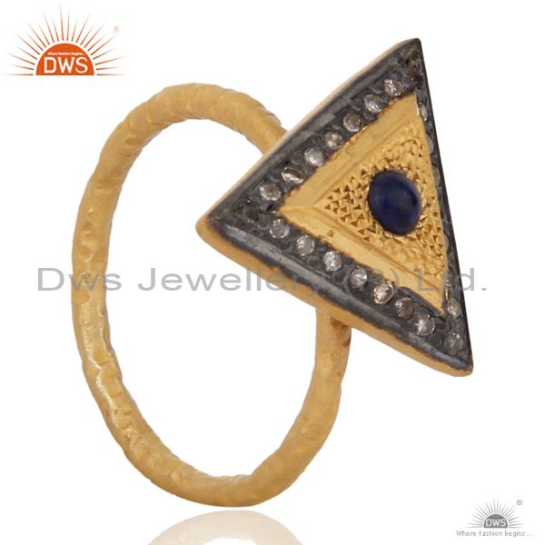 Natural Pave Diamond 18K Gold On 925 Sterling Silver Blue Sapphire Gemstone Ring