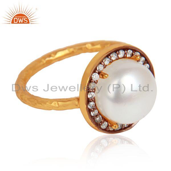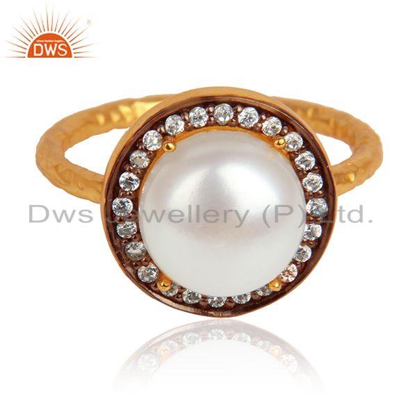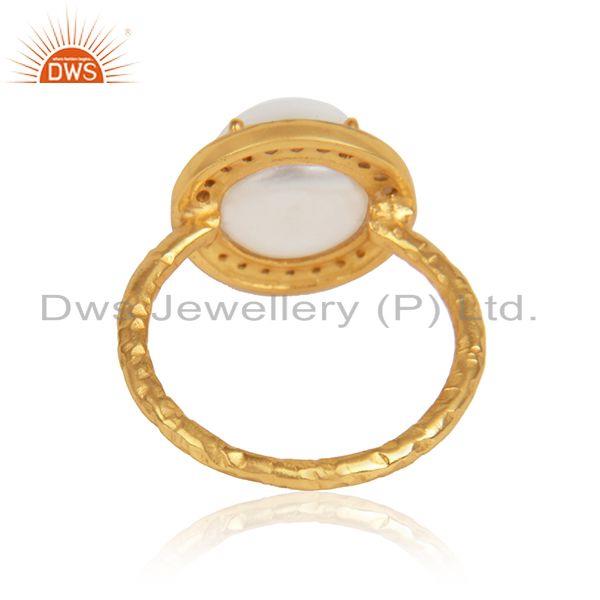 Natural Pearl Gemstone Cz Gold Plated Designer 925 Silver Rings