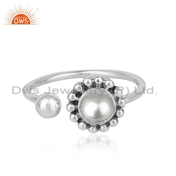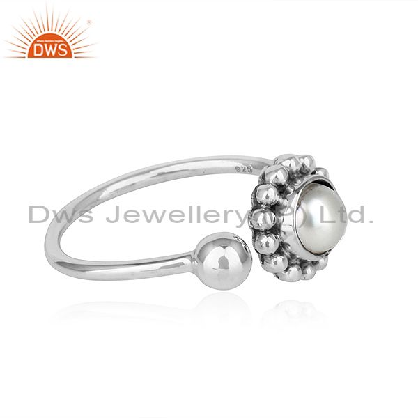 Natural Pearl Gemstone Designer Sterling Silver Oxidized Finish Rings