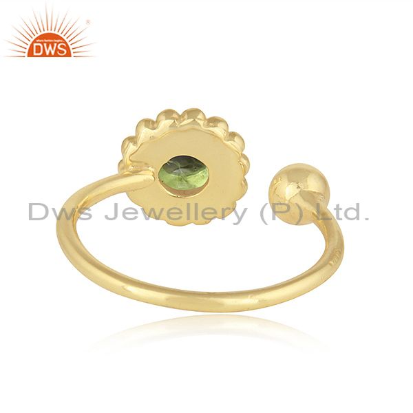 Natural Peridot Gemstone Designer Gold Plated Silver Rings Jewelry