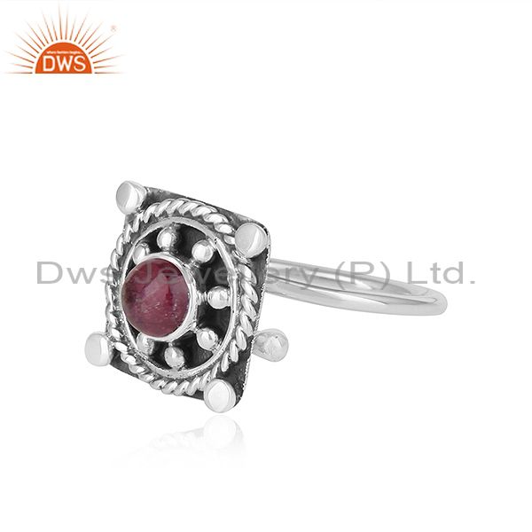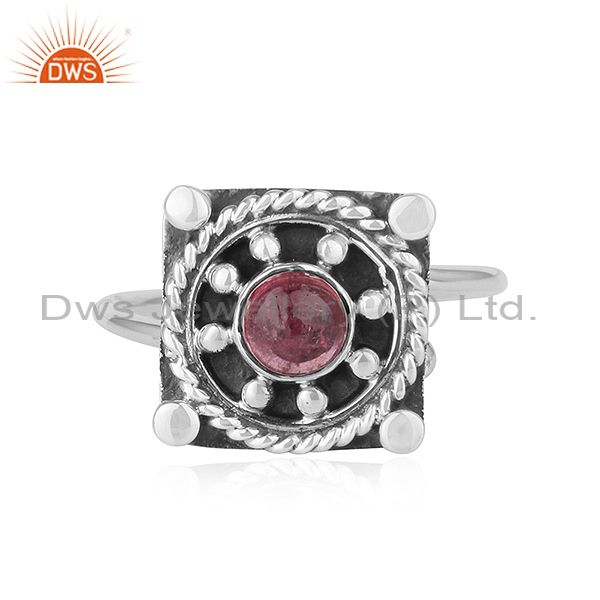 Natural Pink Tourmaline Gemstone Oxidized Silver Antique Ring Jewelry
