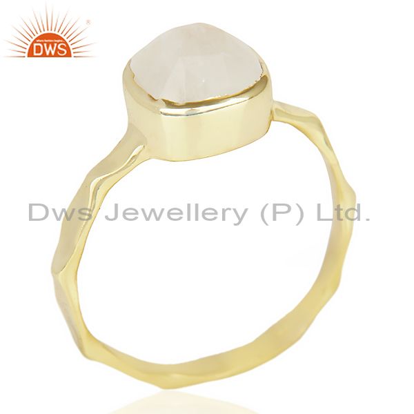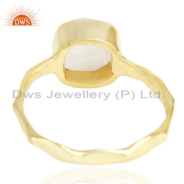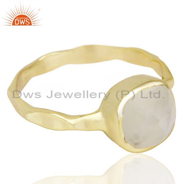 Natural Rainbowmoon Stone Cushion Shape Gold Plated Hammered Ring In Silver