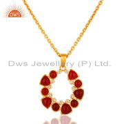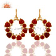Natural Red Aventurine 22K Yellow Gold Plated Split Shank Ring With Cz