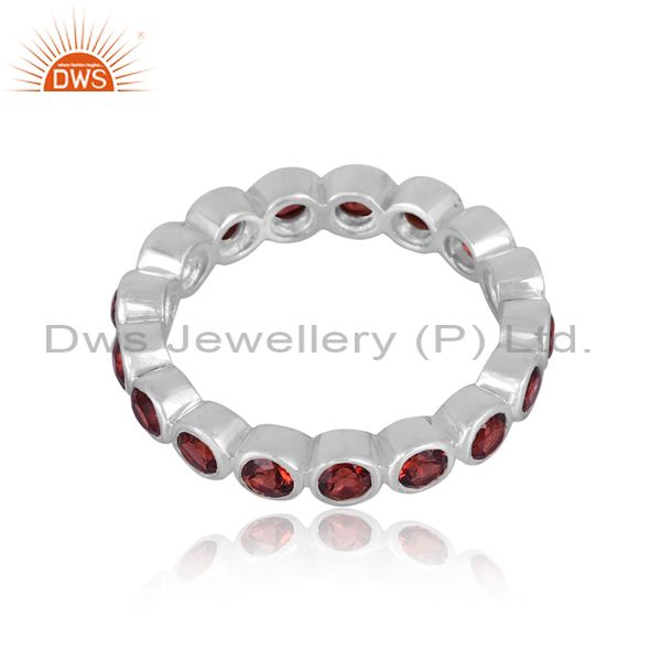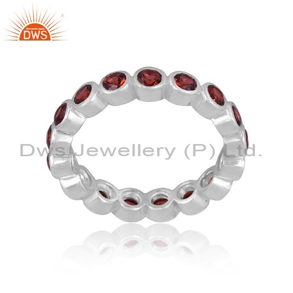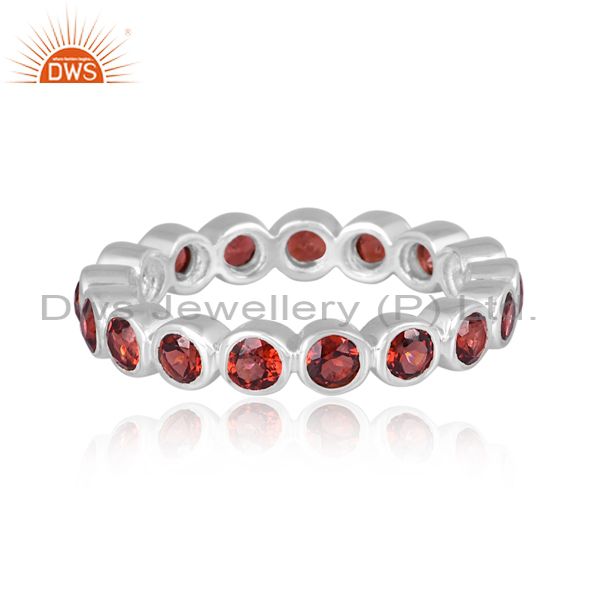 Natural Red Garnet Sterling Silver Eternity Band Ring