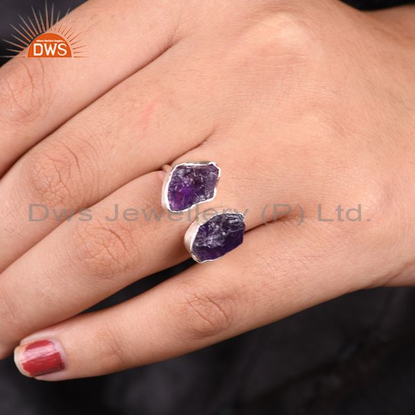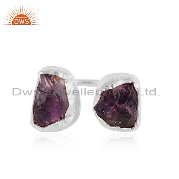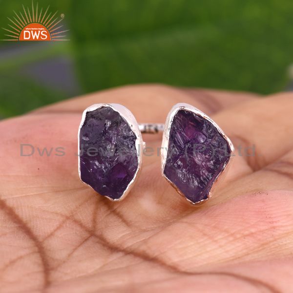 Natural Rough Amethyst Gemstone Fine Silver Rings Jewelry