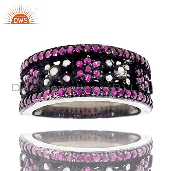 Natural Ruby and Pave Diamond Sterling Silver Promise Rings Jewelry
