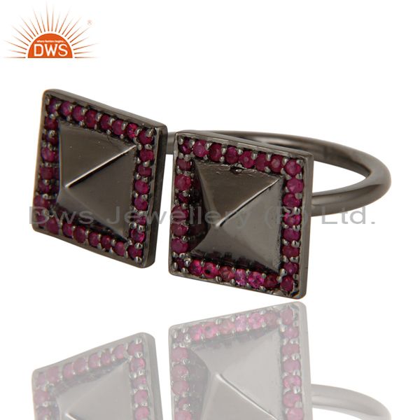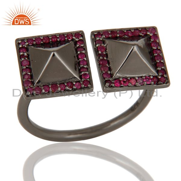 Natural Ruby Black Oxidized Sterling Silver Pyramid Shape Ring Statement Ring