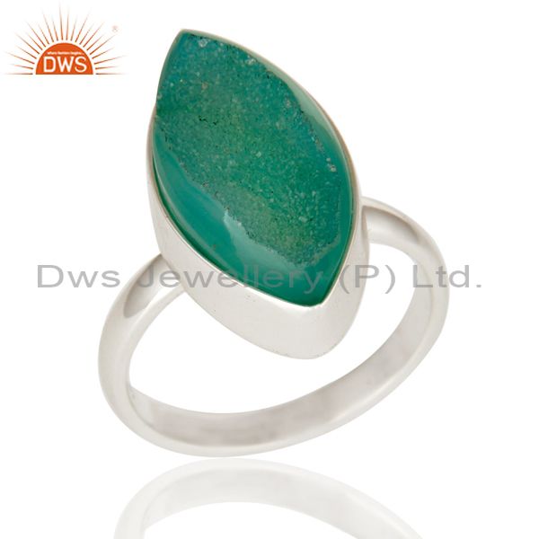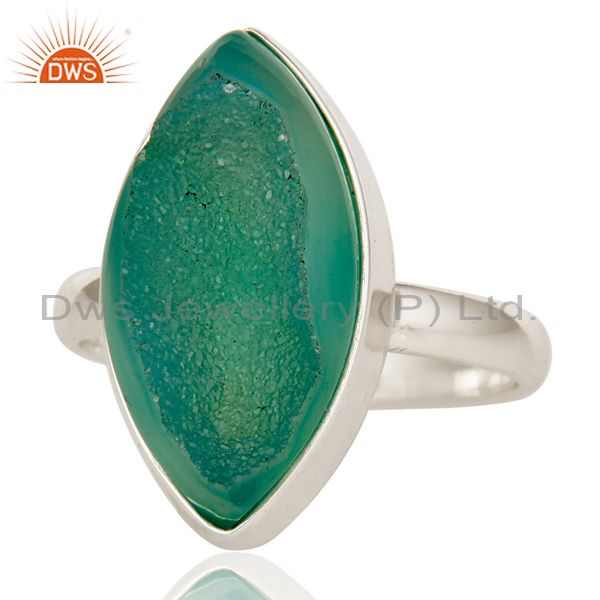 Natural Titanium Green Marquise Drusy Quartz 925 Sterling Silver Ring