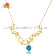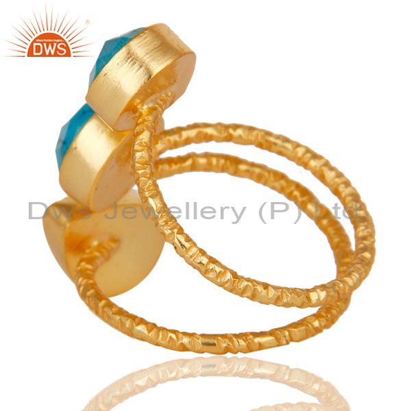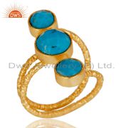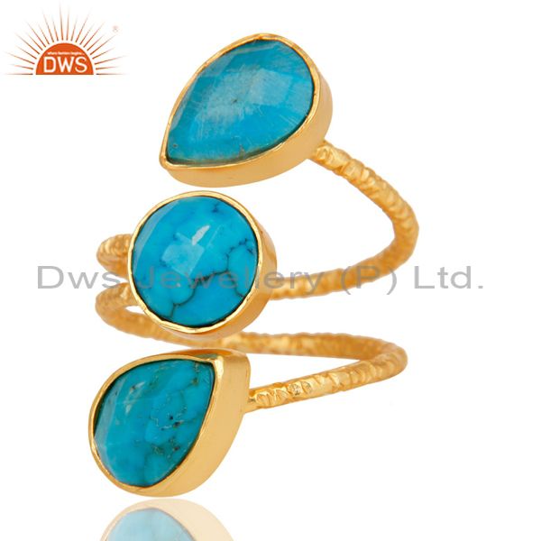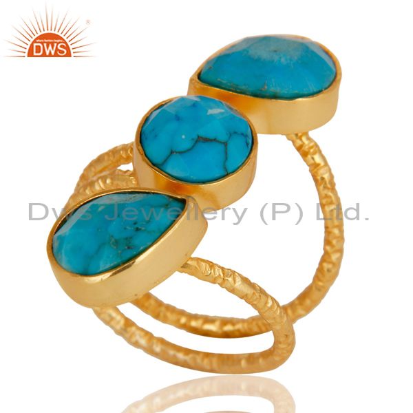 Natural Turquoise 925 Sterling Silver Prong Set Joint Ring With 18k Gold Plated