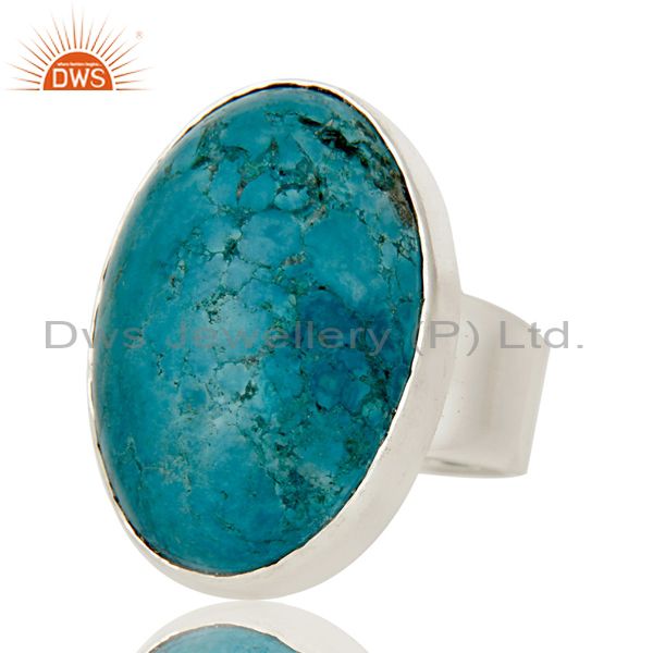 Natural Turquoise Gemstone Bezel Set Statement Ring Made In 925 Sterling Silver