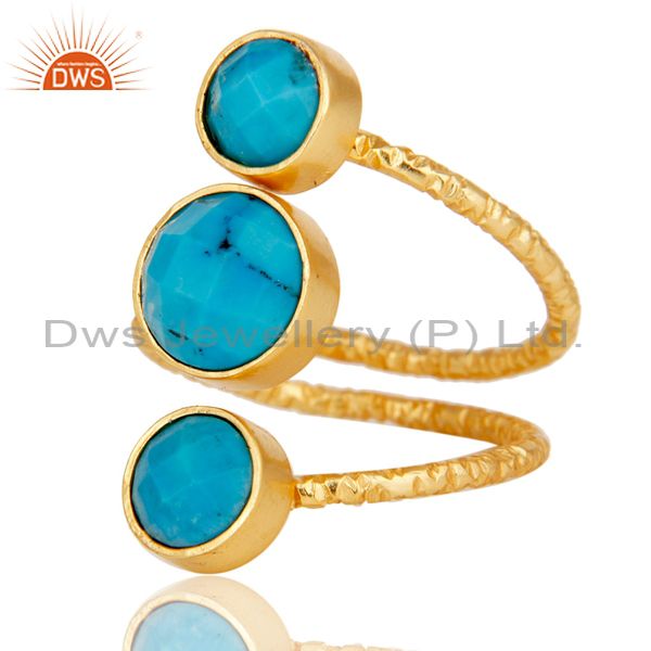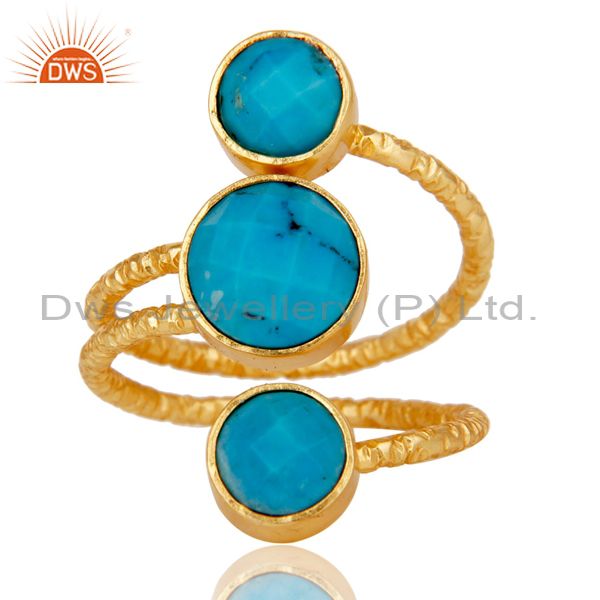 Natural Turquoise Sterling Silver Wire Design Ring with 18k Gold Plated