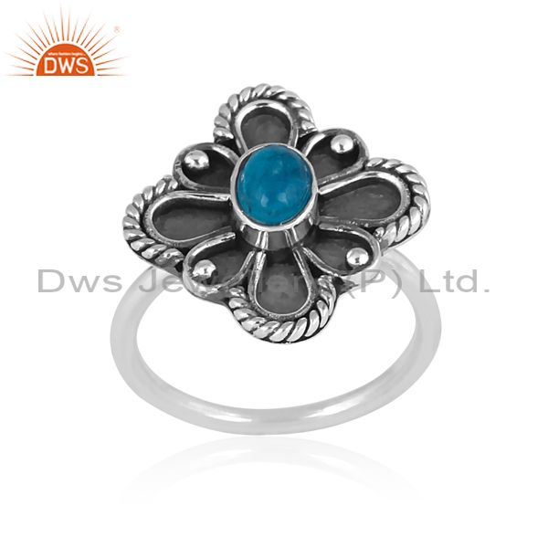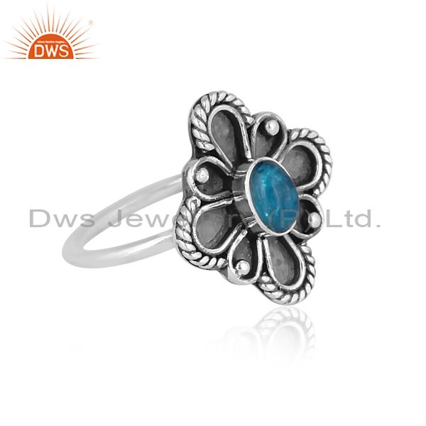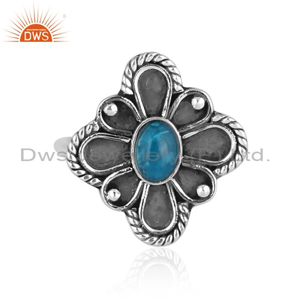 Neon Apatite Set Oxidized Silver Boho Floral Designer Ring