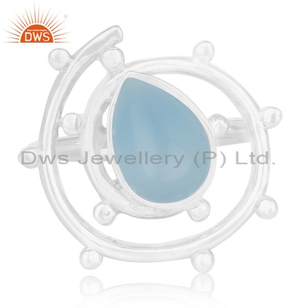 New Arrival 925 Silver Blue Chalcedony Gemtone Cocktail Ring Wholesale