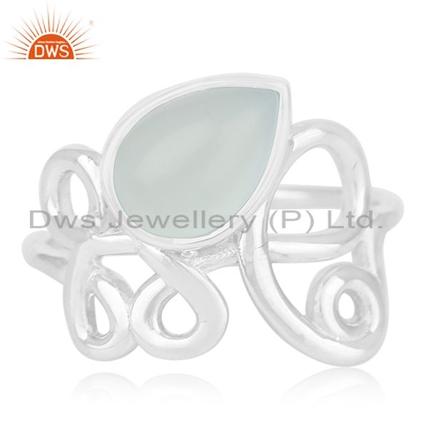 New Arrival Aqua Chalcedony Gemstone 925 Silver Ring Manufacturers