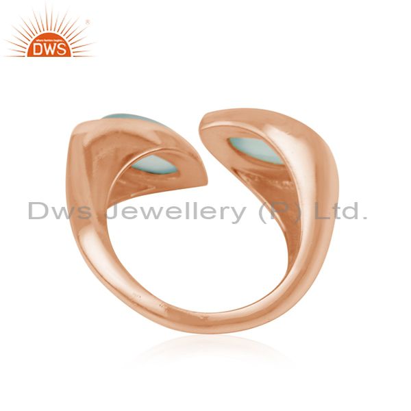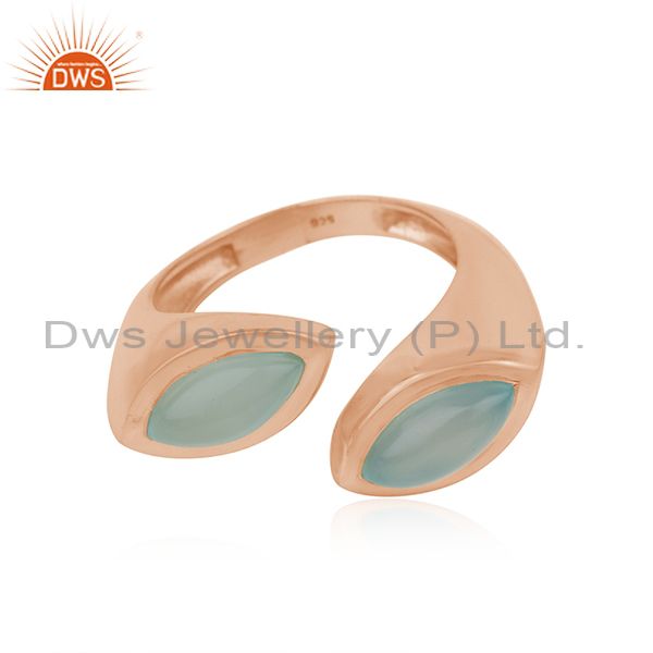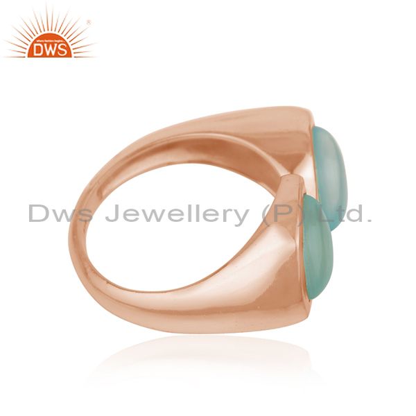 New Look Designer Rose Gold Plated Silver Aqua Chalcedony Ring Jewelry