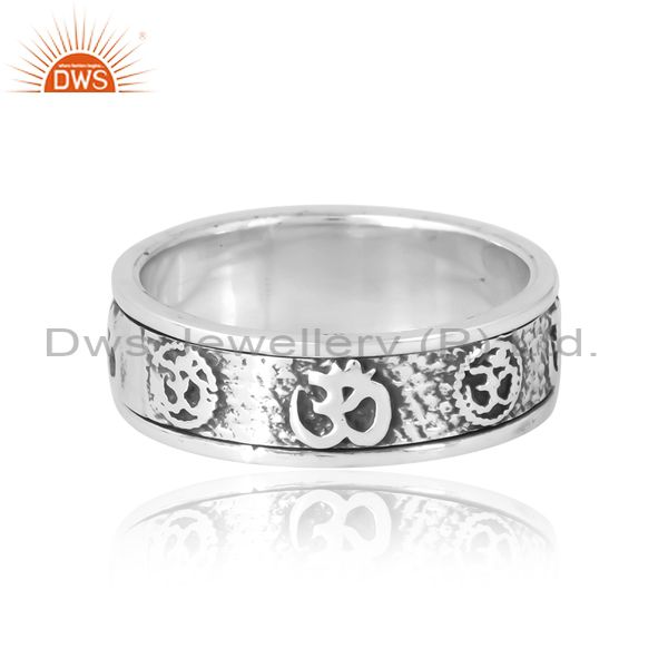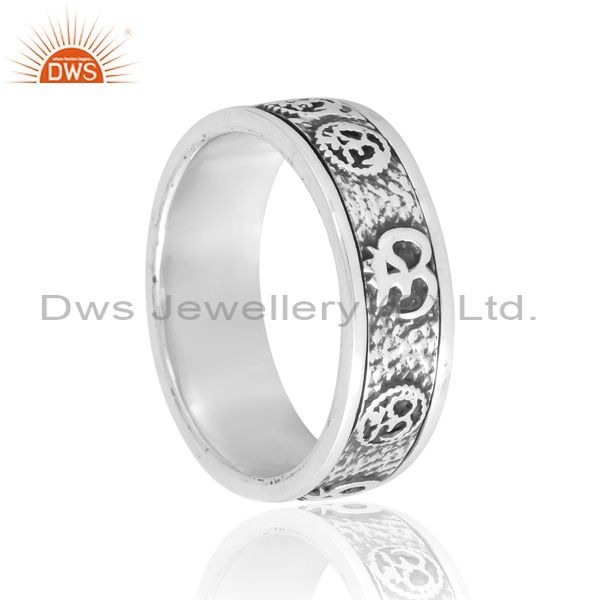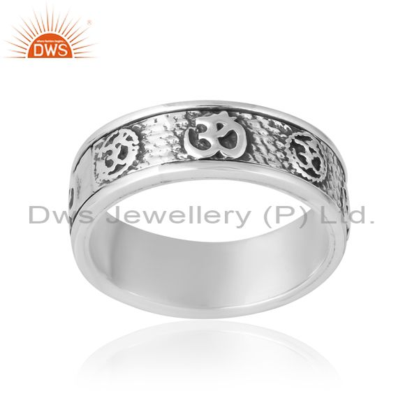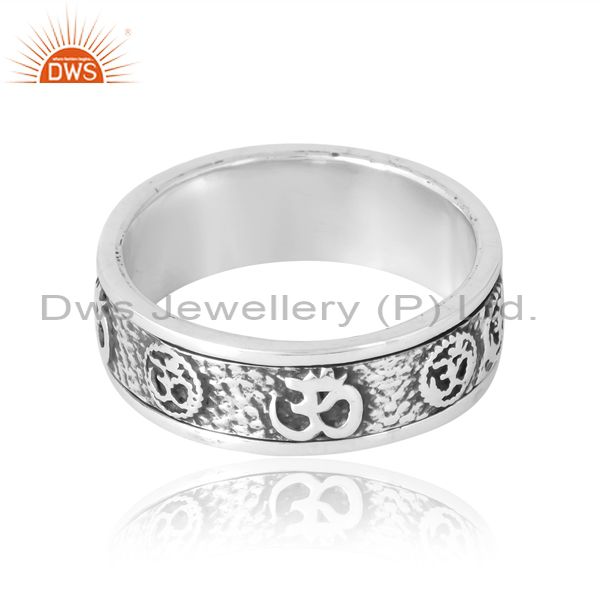 Om Mudra Ring In Silver With Low Oxidised Pattern Unisex