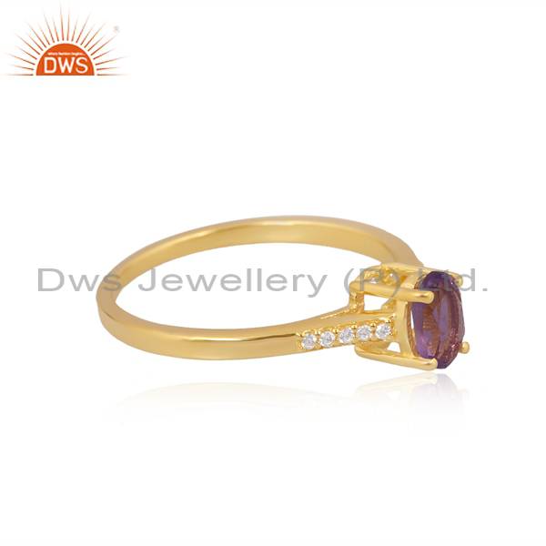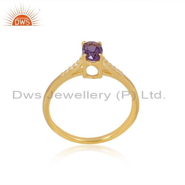 Oval Amethyst & Round Cz Ring - Sparkling & Unique Design!