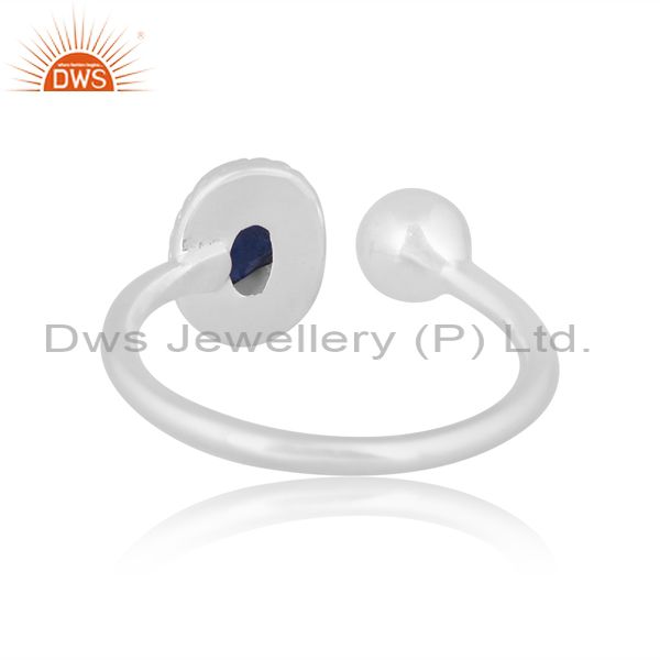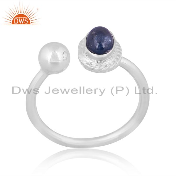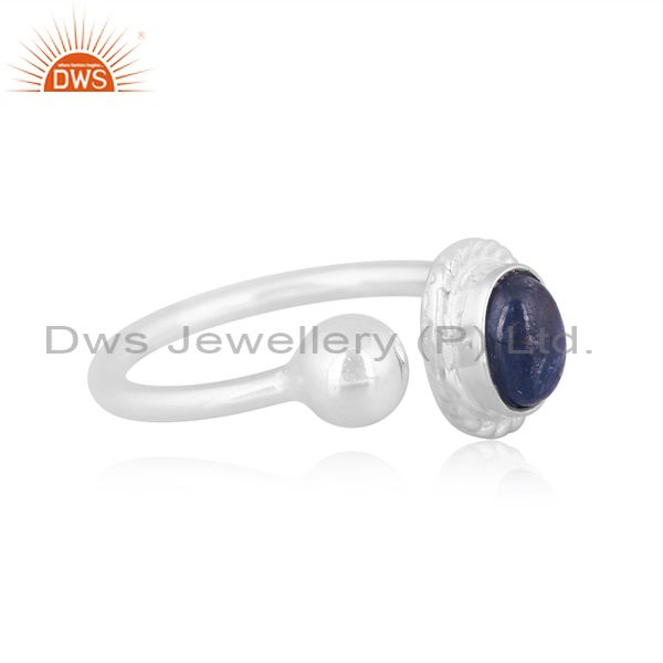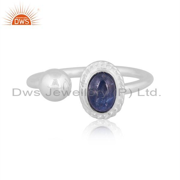 Oval Blue Sapphire Set Fine Sterling Silver Handmade Ring