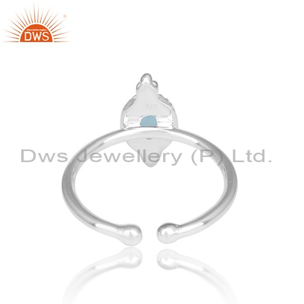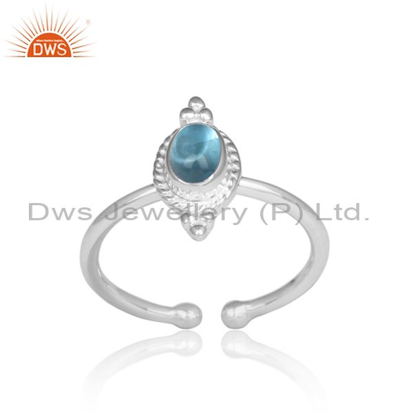 Oval Blue Topaz Set Handmade Fine Silver Adjustable Ring