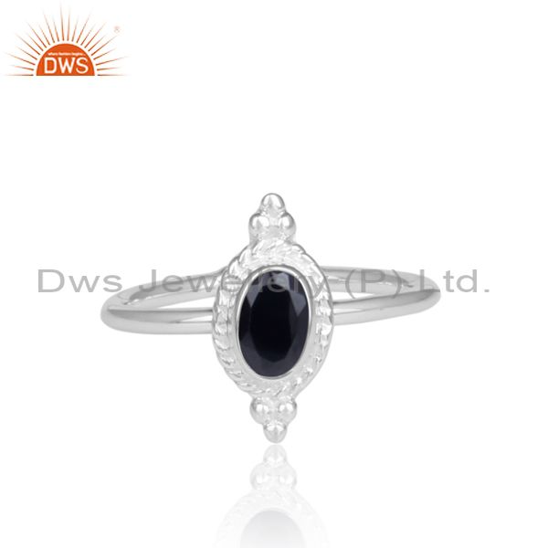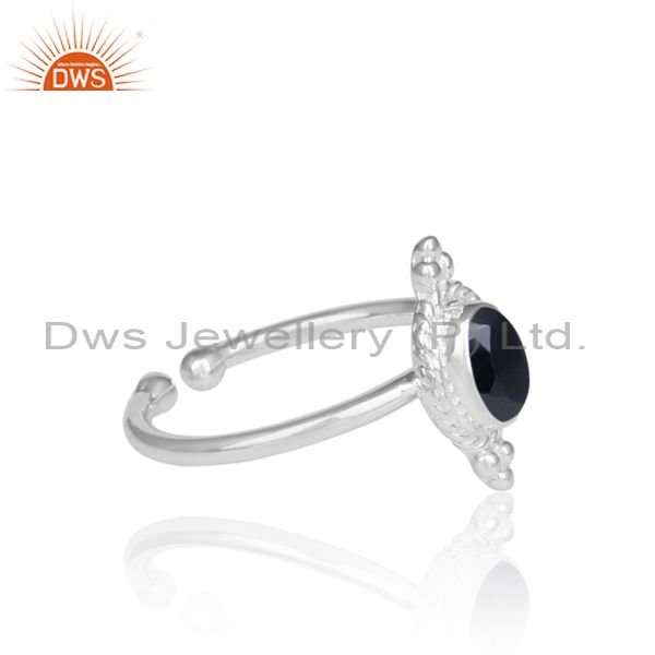 Oval Cut Black Spinal Handmade Fine Silver Adjustable Ring