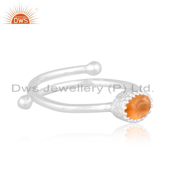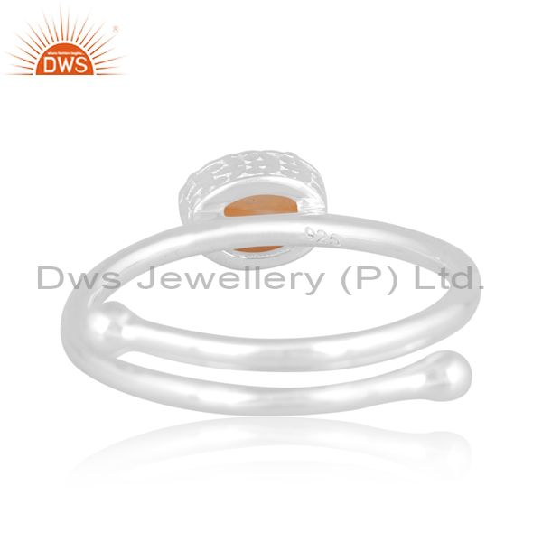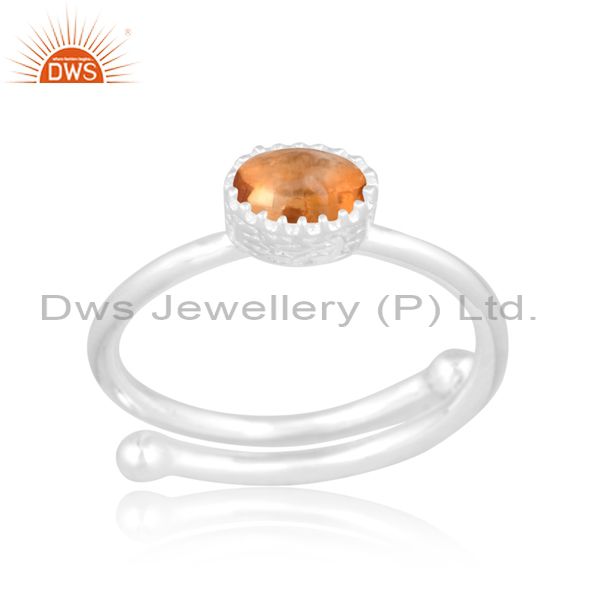 Oval Cut Citrine Set Fine 925 Sterling Silver Crown Twist Ring