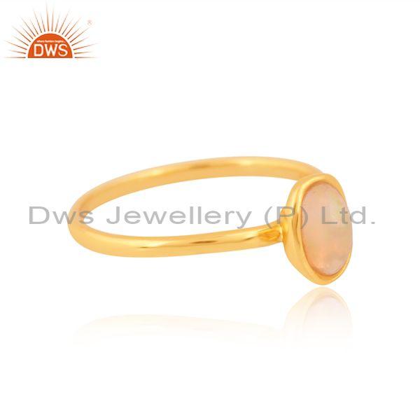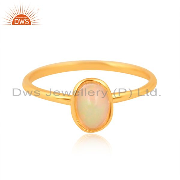 Oval Cut Ethiopian Opal Set Gold On 925 Sterling Silver Ring