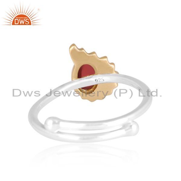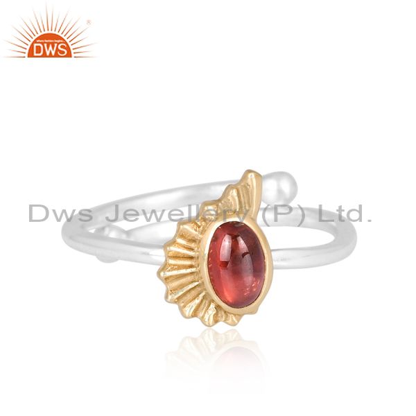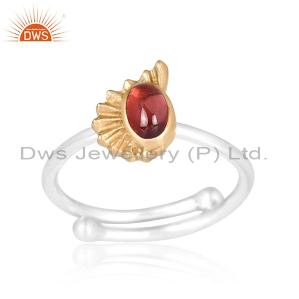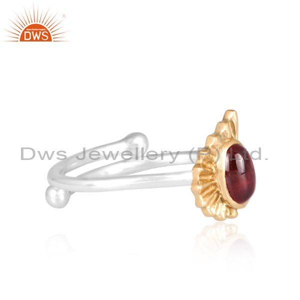 Oval-Cut Garnet Studded White And Gold Sterling Silver Ring