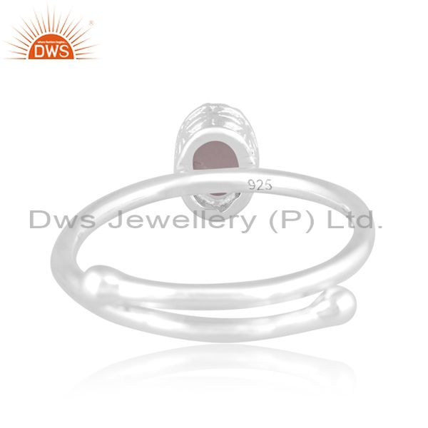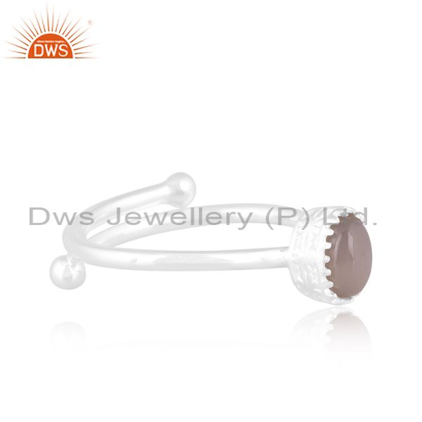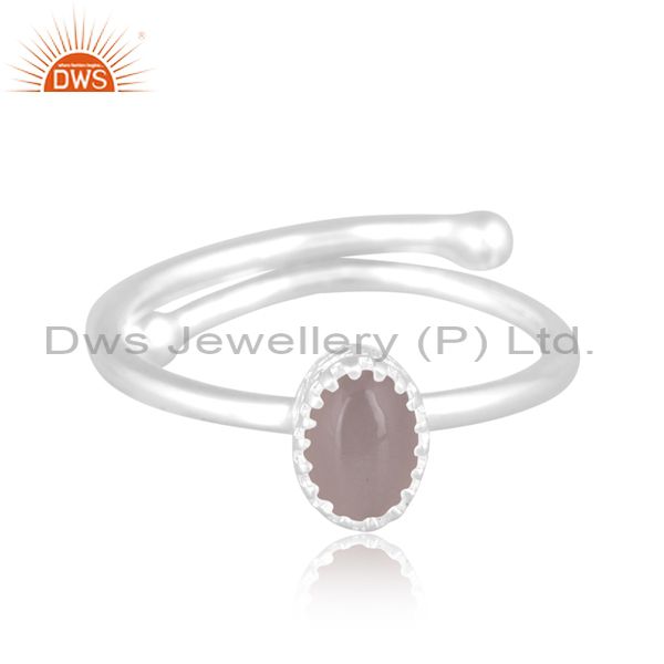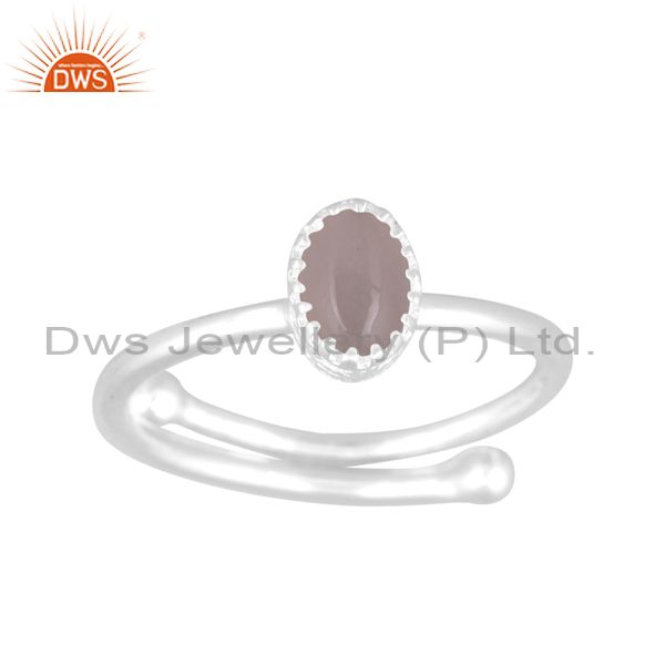 Oval Cut Gray Moonstone Set Fine Sterling Silver Crown Ring