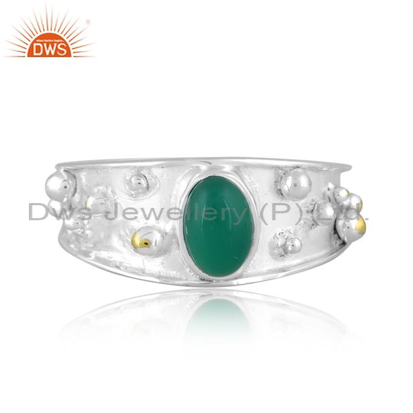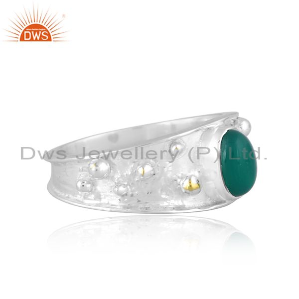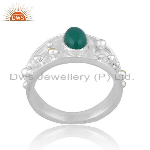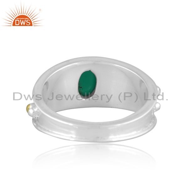 Oval Cut Green Onyx Set Fine 925 Sterling Silver Ethnic Ring