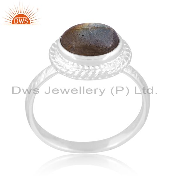 Oval Cut Labradorite Fine 925 Sterling Silver Classic Ring