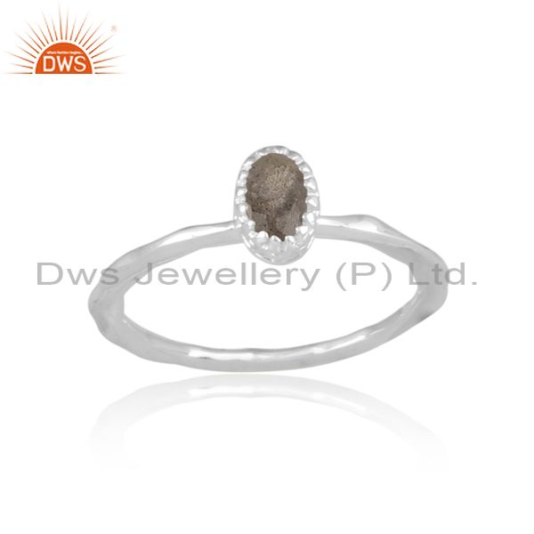 Oval Cut Labradorite Set Fine 925 Sterling Silver Crown Ring