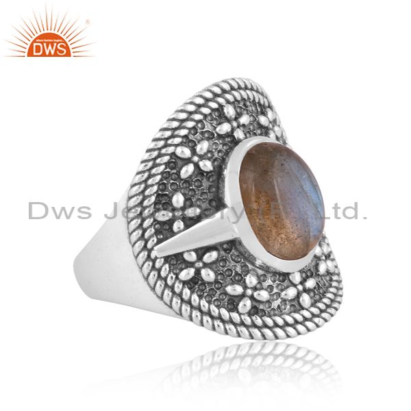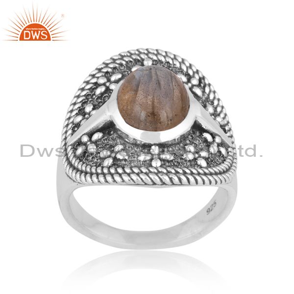 Oval Cut Labradorite Set Oxidized Sterling Silver Boho Ring