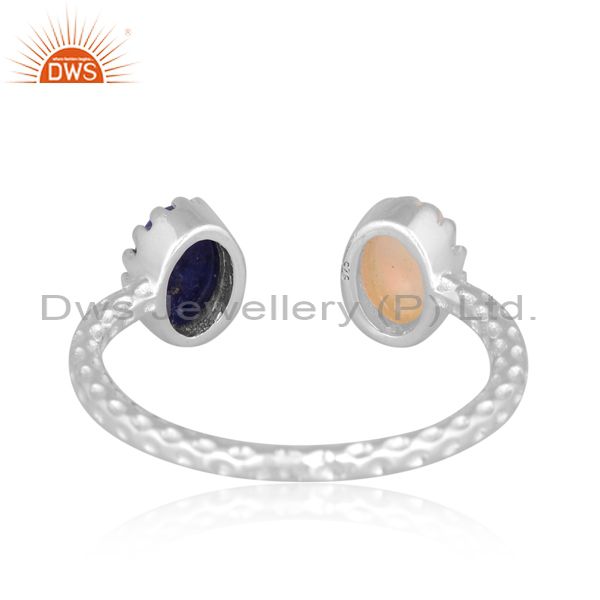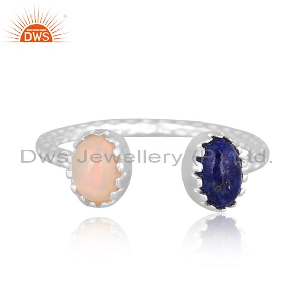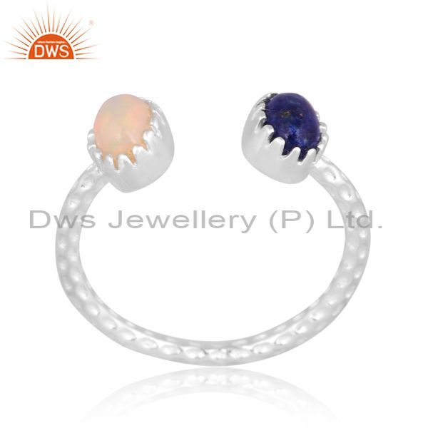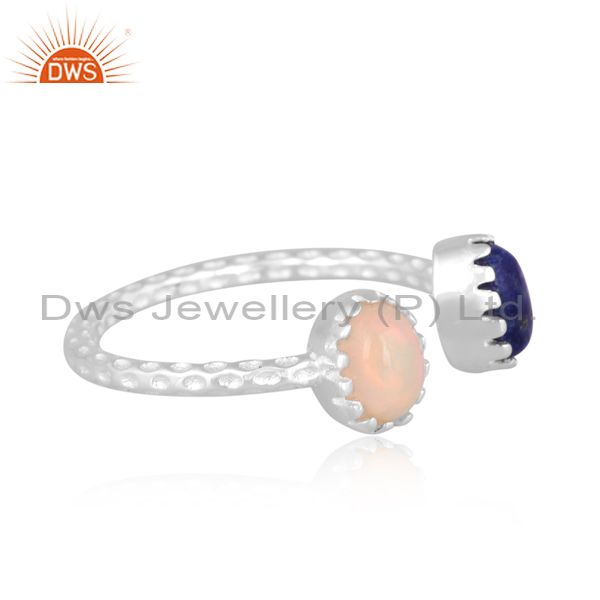 Oval Cut Lapis And Ethiopian Opal Set Fine Silver Open Ring