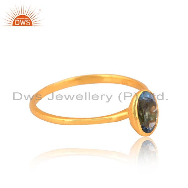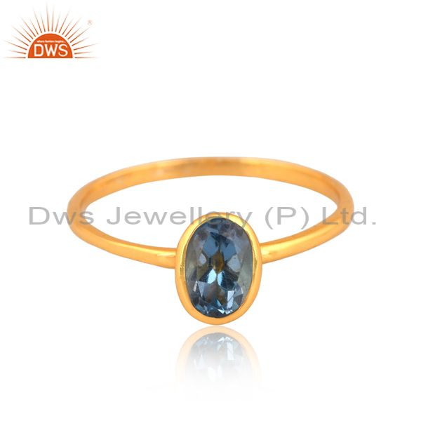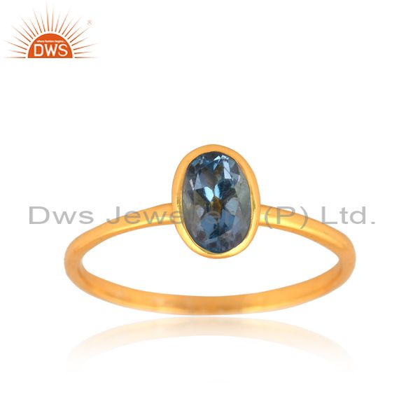 Oval Cut London Blue Topaz Set 18K Gold On 925 Silver Ring