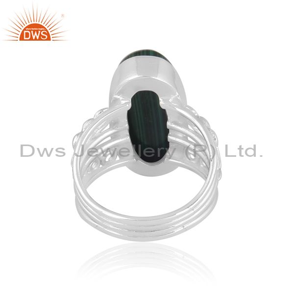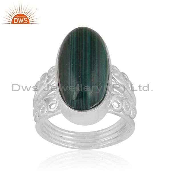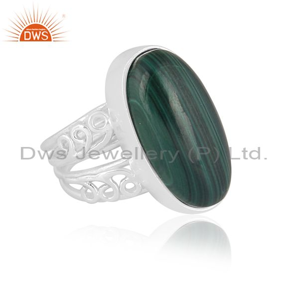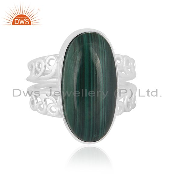 Oval Cut Malachite Set Fine Sterling Silver Designer Ring